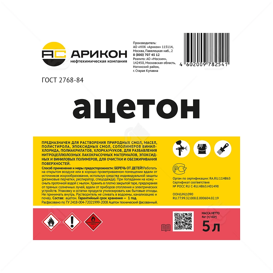 ПодробнееАцетон Арикон ГОСТ 5 л.