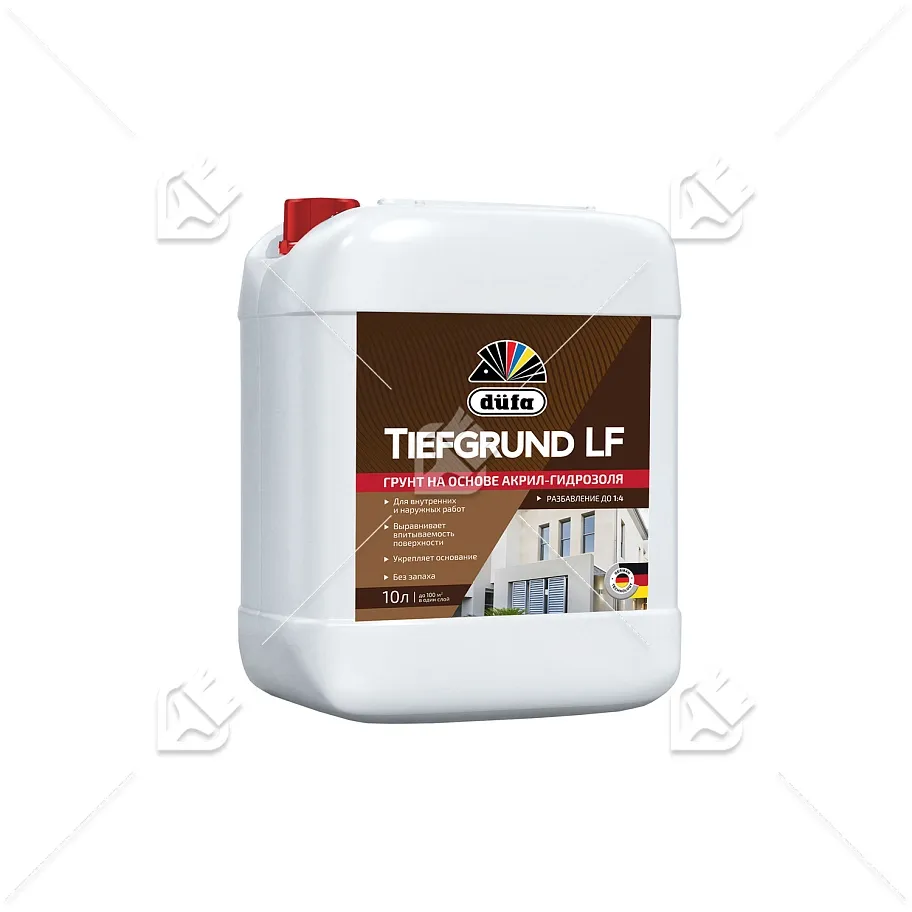 Грунт Dufa Tiefgrund D14 предназначен для внутренних и наружных работ, обладает превосходной проникающей способностью. Очень хорошо укрепляет пропитанные основания. Усиливает прилегающую способность, пропускает воздушные пары, устойчив к воздействию щелочей. Грунтовка высыхает быстро и почти без запаха. Акрилгидрозоль, разбавляется водой, с высоким капилярным действием, для внутренних и наружных работ.