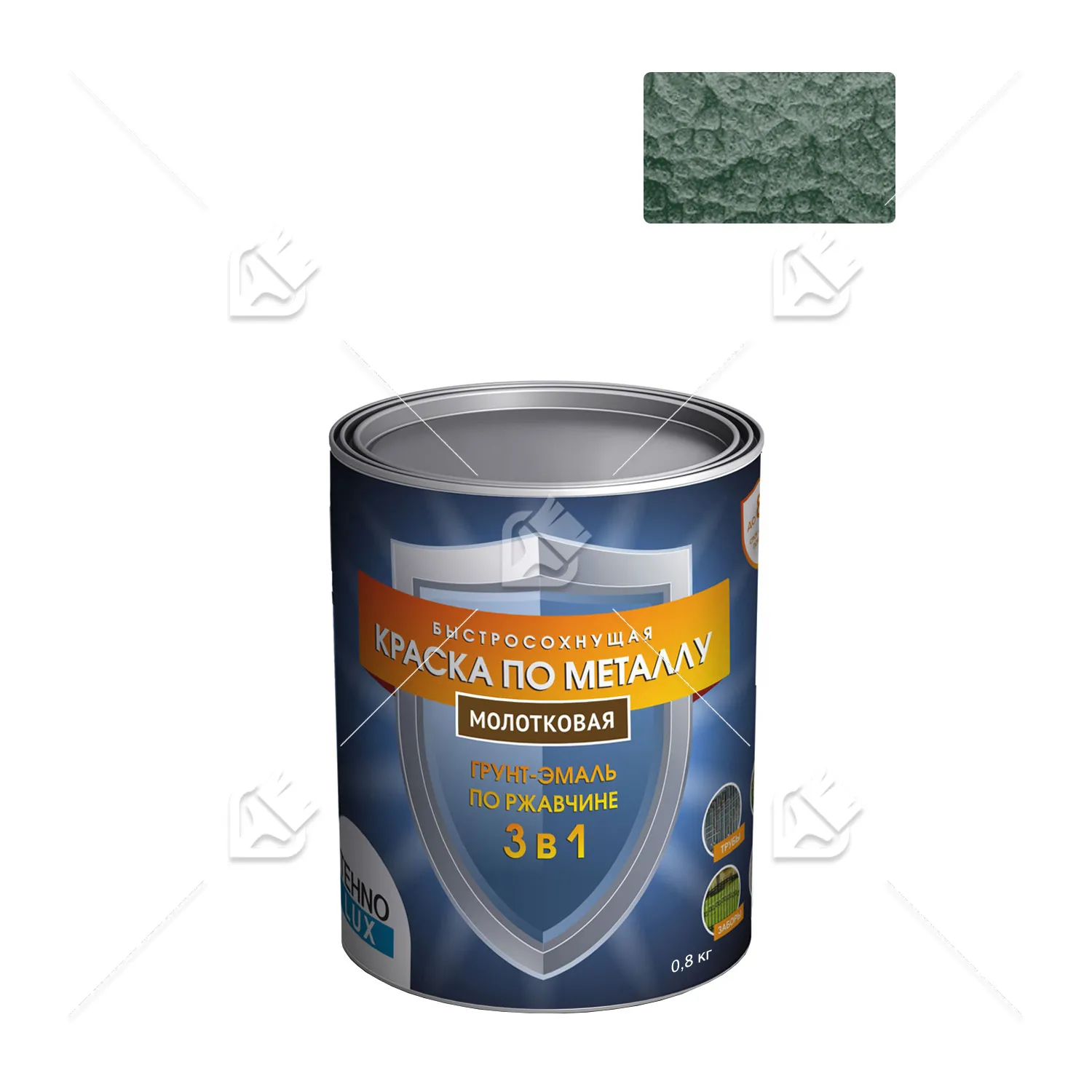 Грунт-эмаль 3 в 1 Технолюкс молотковая зеленая 0,8 кг