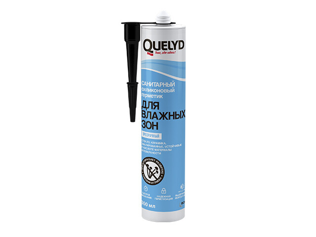 Герметик силикон санитарный Quelyd Для влажных зон белый 300 мл