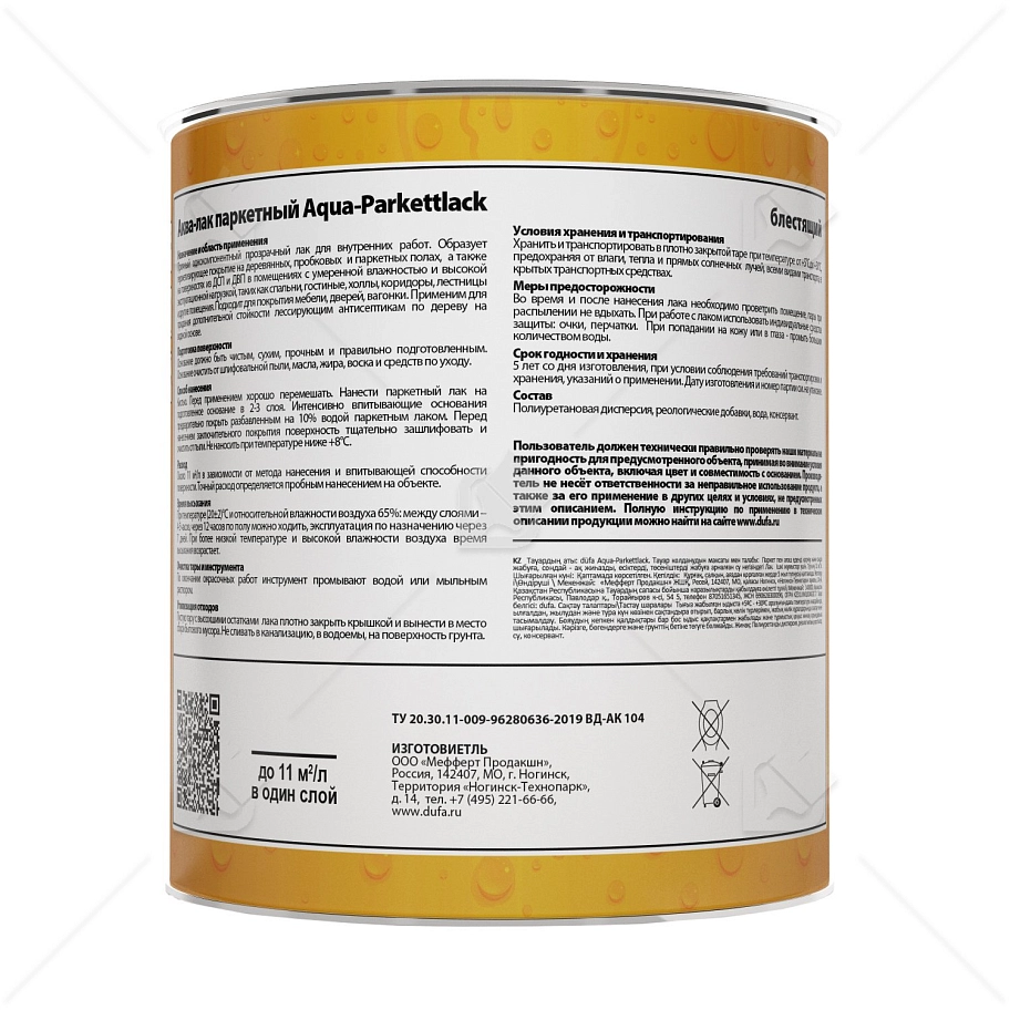 Однокомпонентный паркетный лак для защитно-декоративного покрытия паркета и деревянного пола с нормальной эксплуатационной нагрузкой, а также для покрытия мебели, дверей, вагонки. Стойкий к истиранию, разбавляется водой, для внутренних работ.
