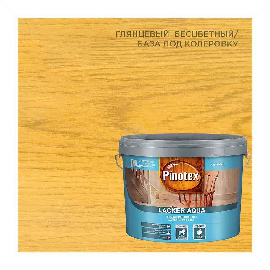 ПодробнееЛак для дерева на водной основе колеруемый Pinotex Lacker Aqua 70 глянцевый 9 л.