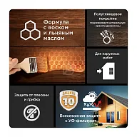- Уникальные компоненты УФ-фильтр, воск, льняное масло, добавки против грибка и водорослей