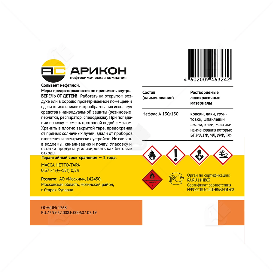 ПодробнееСольвент нефтяной Арикон 130/150 ГОСТ 0,5 л.